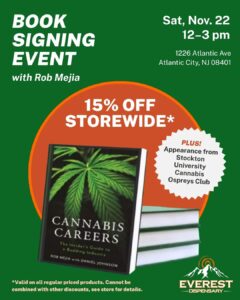 Stop by to get a signature from the author of Cannabis Careers, Rob Mejia — and enjoy 15% off storewide!