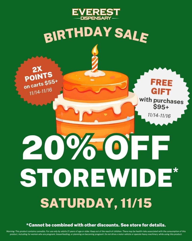 Welcome to the Everest Dispensary and its affiliates Terms of Use agreement. For purposes of this agreement, “Site” refers to the Company’s website, which can be accessed here. “Service” refers to the Company’s services accessed via the Site, in which users can browse our information and services, view educational material, view products, make appointments and place product orders for pick up. The terms “we,” “us,” and “our” refer to the Company. “You” refers to you, as a user of our Site or our Service.